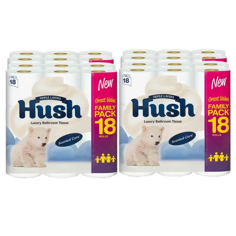 Hush tissue papers are designed to be used anytime where cleanliness and comfort are a priority. It is often the simple things that make life a whole lot easier. In our everyday lives, comfort and ease combined with responsible choices can make a big difference to the quality of life.3 PLY TISSUE PAPERS: Hygienic, safe, soft, and disposable, Hush 3-ply tissue papers gently pamper your skin. They bring comfort not only at home but also wherever you go. You will love the extra comfort & clean wipe of Hush Luxury 3-ply super-soft toilet tissue.COMFORT & EASE: Hush tissue papers are designed to be used anytime where cleanliness and comfort are a priority. It is often the simple things that make life a whole lot easier. In our everyday lives, comfort and ease are combined.NATURAL FIBRE: Hush premium toilet rolls are made using natural fiber that is soft and absorbent. They come with the added advantage of being able to dissolve and disintegrate faster than an average toilet paper and roll flush away easily.TOUCH OF COTTON: Created with micro-impressions, quilted and ultra-soft to touch yet absorbent and strong, with a touch of cotton, for the softness your skin deserves. Fresh wipes with your everyday toilet tissue to feel cleaner and fresher than ever before. Features: Hush tissue papers are designed to be used anytime where cleanliness and comfort are a priority Hush premium toilet rolls are made using natural fiber that is soft and absorbent Hygienic, safe, soft, and disposable It is often the simple things that make life a whole lot easier Specifications: Dimensions: H:96.0 x W:34.0 x D:33.0 cm Model Number: H1802T3NNON03