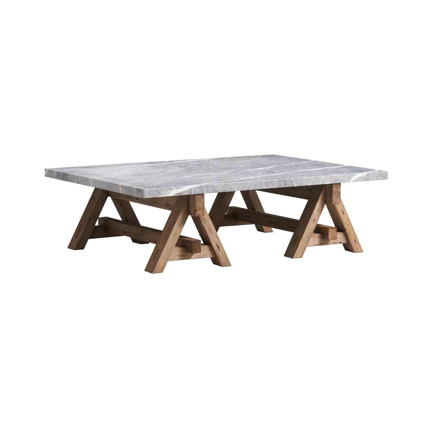 Rugged timber contrasts with cool marble in a bold, sculptural form. The base is handcrafted using century-old reclaimed pine, rescued from old homes and disused buildings. A-Frame Coffee Table, Coffee Table - Andrew Martin
