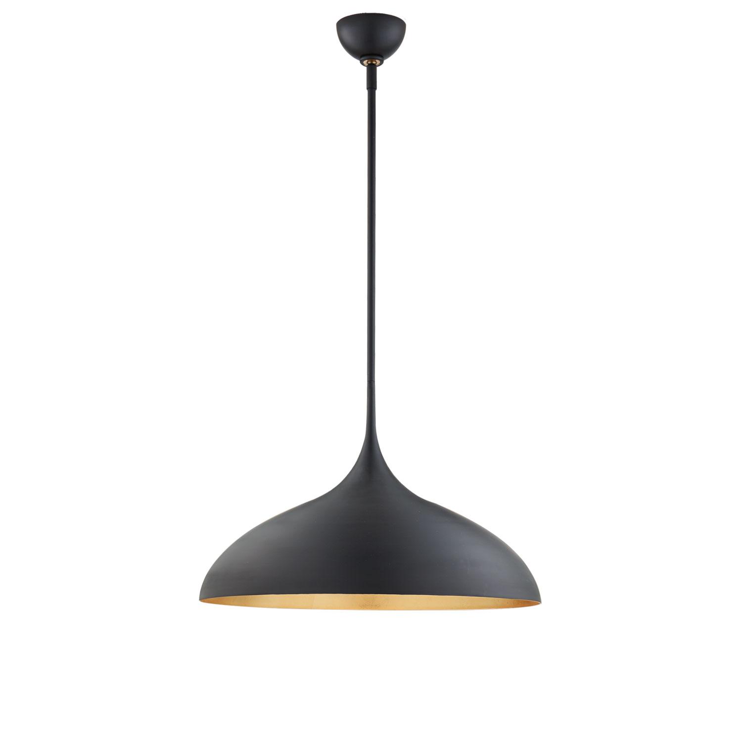 A sleek and contemporary ceiling light in matte black with a gleaming gild interior. Designed by iconic designer AERIN, Agnes has satisfyingly curved lines with a nod to mid-century style and a refined modern finish. Available in three varying sizes. Agnes Pendant Black, Pendant Light, Large - Andrew Martin