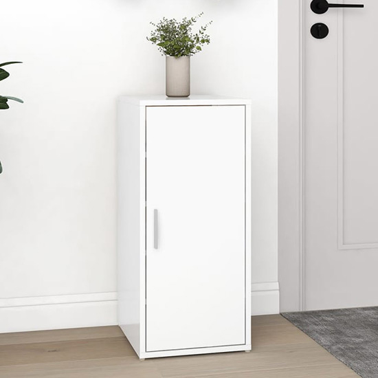 Airell Wooden Shoe Storage Cabinet With 5 Shelves In White, This shoe cabinet provides a great storage solution for your collection of favourite footwear. FEATURES : Material : Engineered Wood Finish : White This shoe organiser is durable and sturdy for long service life It is in a simple design, which can fit easily into your existing living space The shoe rack has 5 Shelf, providing ample space for keeping your shoes well organised This shoe shelf can stand on the ground or you can hang it to the wall Thanks to the door that can be opened left or right, the shoe storage organiser protects your shoes from dust and keeps them out of sight Additionally, it is easy to clean with a damp cloth In order to prevent overturning, this product must be used with the wall attachment device provided Available at an affordable price Images shown are for illustration purpose only DIMENSIONS : Height : 70cm Length : 32cm Width : 35cm