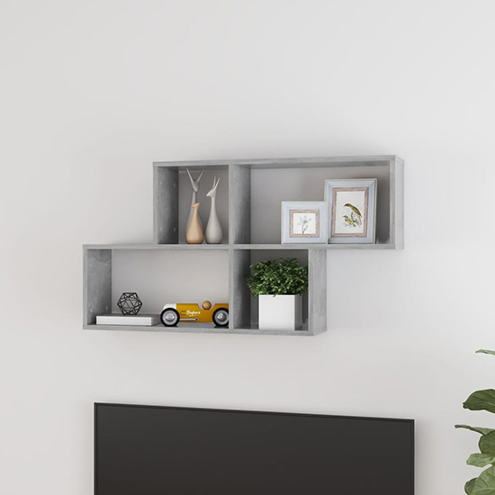 Akua Wooden Wall Cube Shelf In Concrete Effect, The wall shelf featuring the practical design is meant to be the focal point of your living room, bedroom, etc. With an invisible mounting system, the wall cube shelf is easy to install and serves as the perfect place to keep the items such as awards, books, collectibles, ornaments, etc. FEATURES : Material : Engineered Wood Finish : Concrete Effect The wall cube shelf is sturdy and stable Additionally, it is easy to clean with a damp cloth The display shelf is suitable for most decor and turns an empty wall into a design feature! Screw and plug for inside the wall are not included Seek and use screw and plug suitable for your walls If you are uncertain, seek professional advice Read and follow each step of the instruction carefully Available at an affordable price Images shown are for illustration purpose only DIMENSIONS : Height : 53cm Width : 100cm Depth : 18cm
