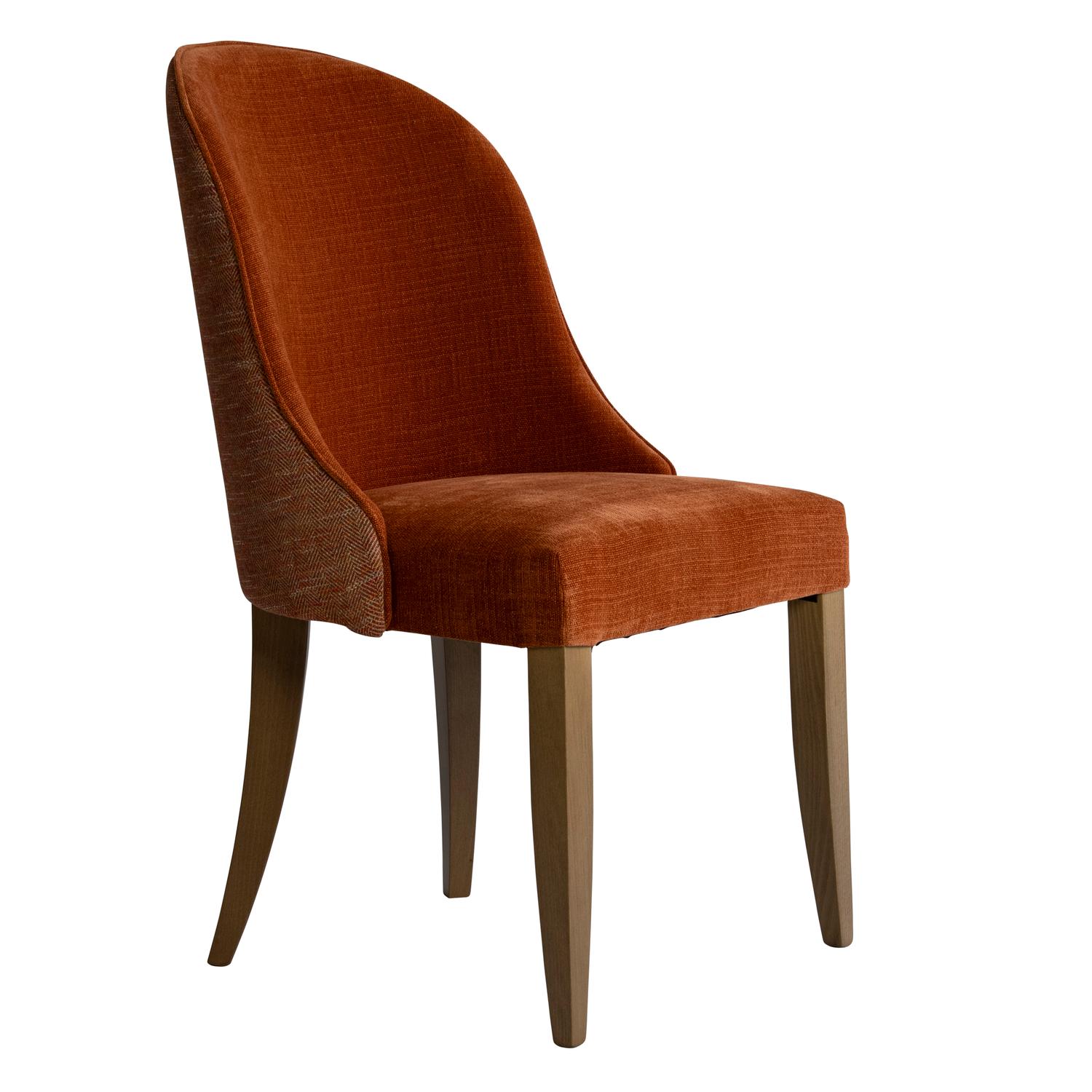 A comfortable dining chair with padded seat, full back rest and wooden legs that are slightly tapered at the back. Aldwick has been upholstered on the front in Coracle Crab, a warm-toned chenille, whilst the back is upholstered in Delphini Cinnamon. Aldwick Dining Chair Coracle & Delphini, Chair, Delphini Cinnamon - Andrew Martin Other Fabric