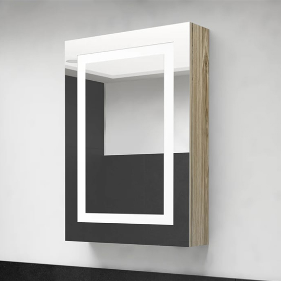 Aliso Bathroom Mirrored Cabinet In Oak With Led