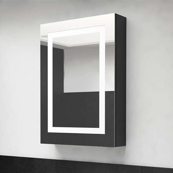 Aliso Bathroom Mirrored Cabinet In Shining Black With Led