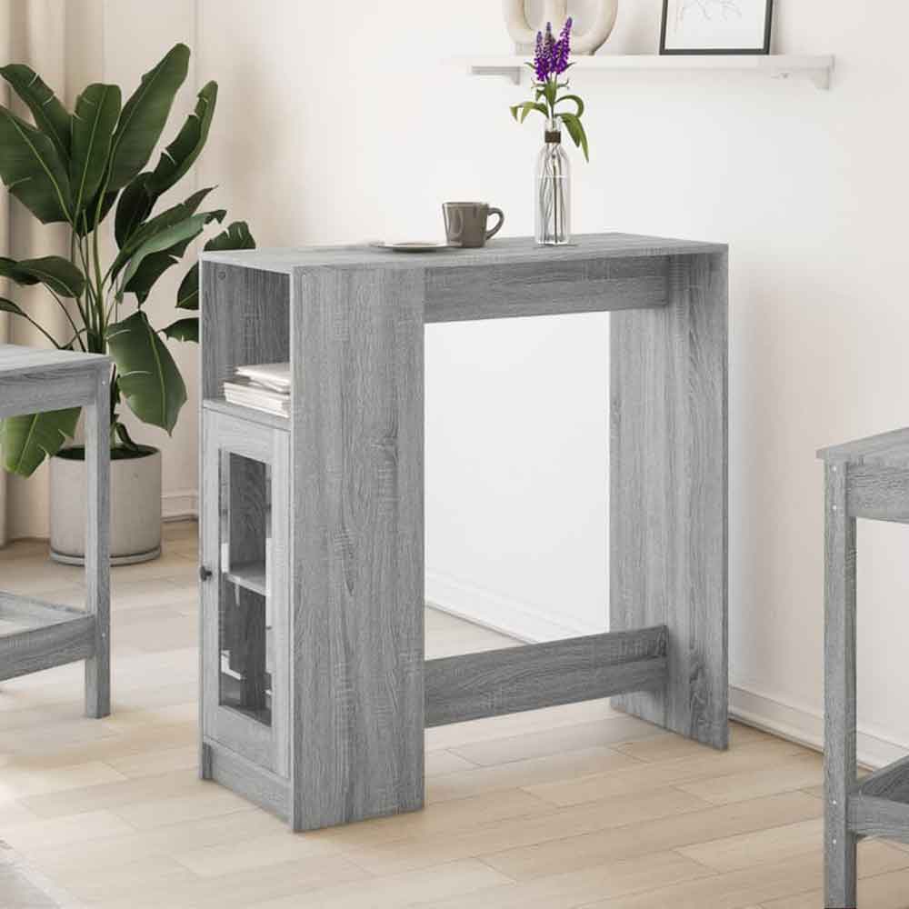 Bring modern elegance and everyday functionality to your home with the Furniture in Fashion Alvero Wooden Rectangular Bar Table With 1 Door In Grey Sonoma. Featuring a stylish Grey Sonoma finish and sleek rectangular design, this contemporary bar table enhances the look of any kitchen, dining room, or living space. Its clean lines and inviting design make it the perfect centrepiece for casual meals, entertaining guests, or enjoying drinks in style. Crafted from durable engineered wood, this bar table offers excellent strength, stability, and resistance to moisture, warping, and splitting for long-lasting use. Designed with integrated storage compartments and a practical cabinet door, it provides ample space to organise bottles, dinnerware, and everyday essentials. Combining modern aesthetics with practical storage, this versatile bar table is ideal for creating a functional and stylish home bar or dining area. FEATURES: Material: Wooden Finish: Grey Sonoma Contemporary Grey Sonoma finish adds a modern and sophisticated touch to any interior Made from high-quality engineered wood for durability, stability, and long-lasting performance Features 1 door with additional storage compartments to keep essentials organised and concealed Provides ample storage space for bottles, wines, kitchen utensils, books, and decorative items Smooth surface is moisture-resistant, helping prevent warping and splitting over time Spacious tabletop offers plenty of room for drinks, snacks, or casual dining Ideal for use in kitchens, dining rooms, living rooms, or home bar setups Easy-to-clean surface simply wipes clean with a damp cloth for low maintenance Strong construction with a total load capacity of up to 80 kg for reliable everyday use Available at an affordable price Images shown are for illustration purpose only DIMENSIONS: Height: 103. 5cm Width: 102cm Depth: 70cm