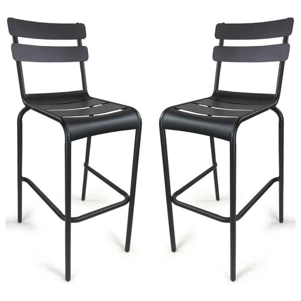 Upgrade your outdoor bar or patio area with the stylish Furniture in Fashion Amarillo Anthracite Aluminium Bar Chairs in Pair. Designed with a sleek contemporary look, these bar chairs blend modern aesthetics with practical durability, making them ideal for gardens, terraces, patios, cafs, and outdoor bar settings. The sophisticated anthracite finish adds a refined touch that complements a wide range of outdoor dcor styles. Crafted from sturdy aluminium, these bar chairs are built to withstand outdoor conditions while maintaining their elegant appearance. The lightweight yet robust frame allows for easy movement and repositioning, while the powder-coated finish enhances resistance to wear, corrosion, and weather exposure. Perfect for both residential and commercial environments, these bar chairs provide comfortable elevated seating for social gatherings or relaxed outdoor dining. FEATURES: Material: Aluminium Finish: Anthracite Supplied as a pair, ideal for outdoor bars, patios, balconies, and garden seating areas Strong and long-lasting material designed for outdoor use Stylish dark grey tone that complements contemporary outdoor dcor Built to withstand changing outdoor conditions while maintaining its look Provides additional protection against corrosion, scratches, and everyday wear Easy to move and rearrange while remaining stable and durable Practical design allows multiple chairs to be stacked when not in use Approximately 75cm seat height, perfect for bar tables and counters Suitable for patios, terraces, cafs, restaurants, or home bars Clean lines and modern design enhance any outdoor entertainment spaces Available at an affordable price Images shown are for illustrative purposes only DIMENSIONS: Width: 48cm Depth: 62cm Height: 109cm Seat Height: 76cm Seat Width: 38cm Backrest Height: 36cm Floor To Cross Bar: 33cm