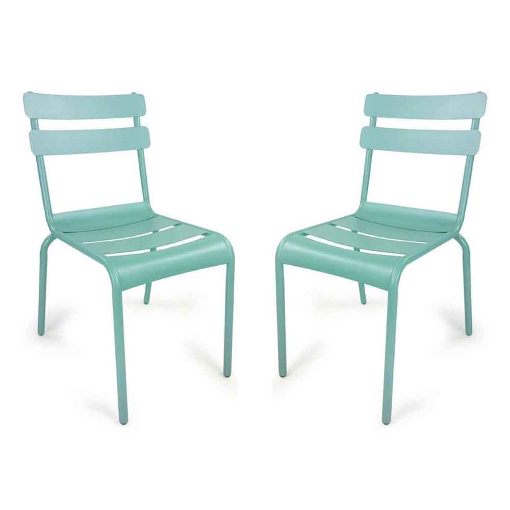 Amarillo Garden Pastel Blue Aluminium Side Chair In Pair
