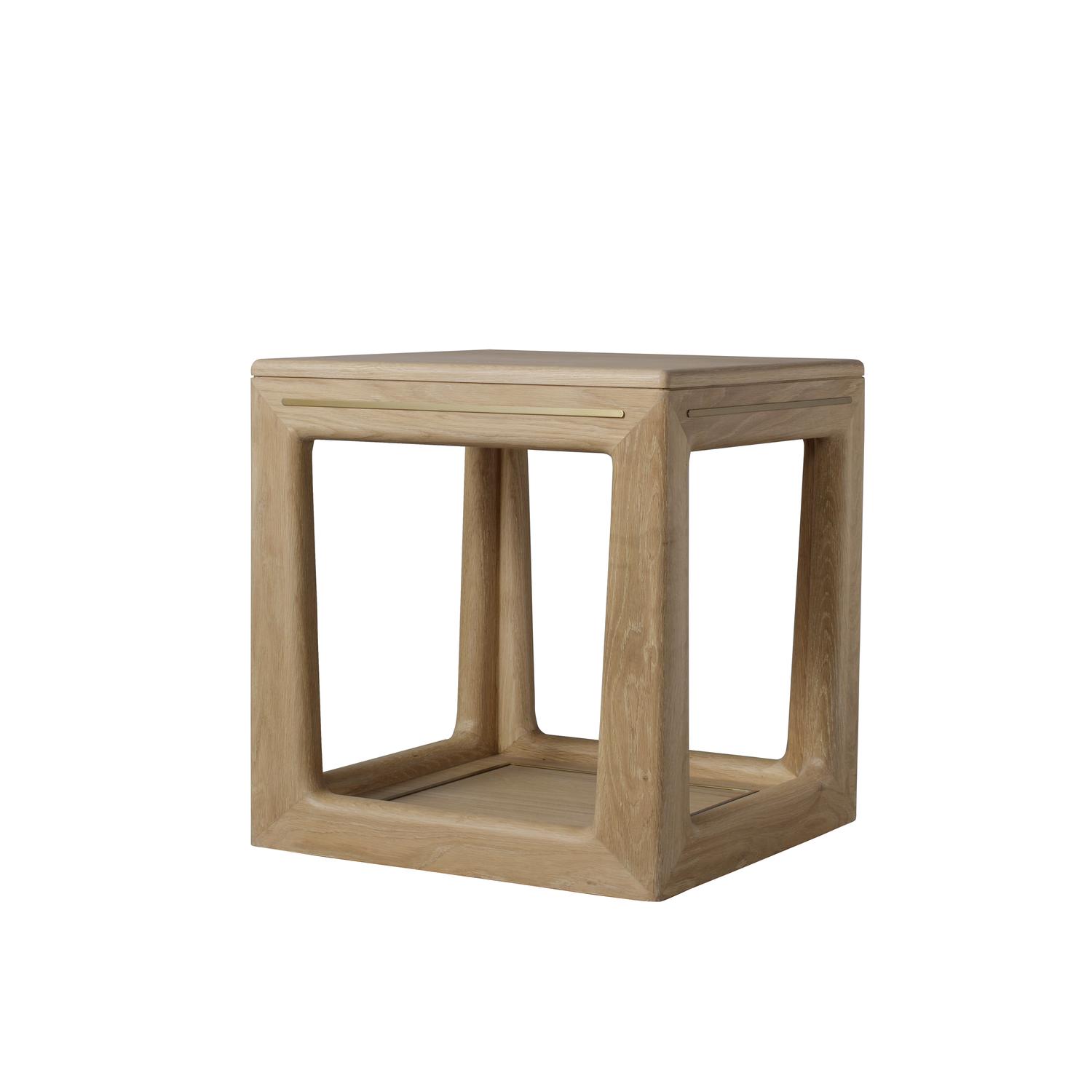 The Angelo Side Table combines the natural beauty of solid oak and oak veneer with sleek brushed brass detailing, offering a luxurious and practical addition to any modern living space. Perfect for living rooms, bedrooms, or hallways. Angelo Side Table, Side Table - Andrew Martin
