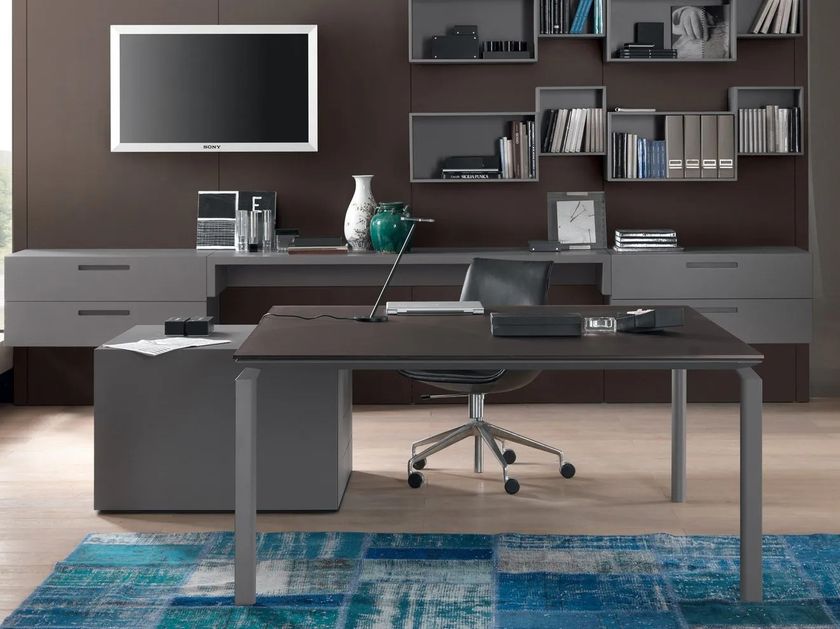 Square desk with drawer unit