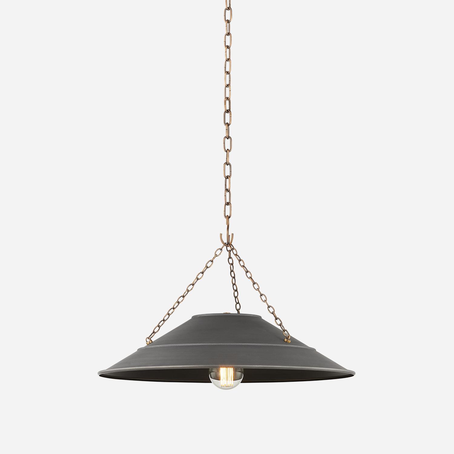 Discover the Arcane Pendant Light in Patina Brass—a bold blend of industrial design, vintage charm, and luxe detailing for standout spaces. Arcane Pendant, Light, Medium, Black/Brass - Andrew Martin