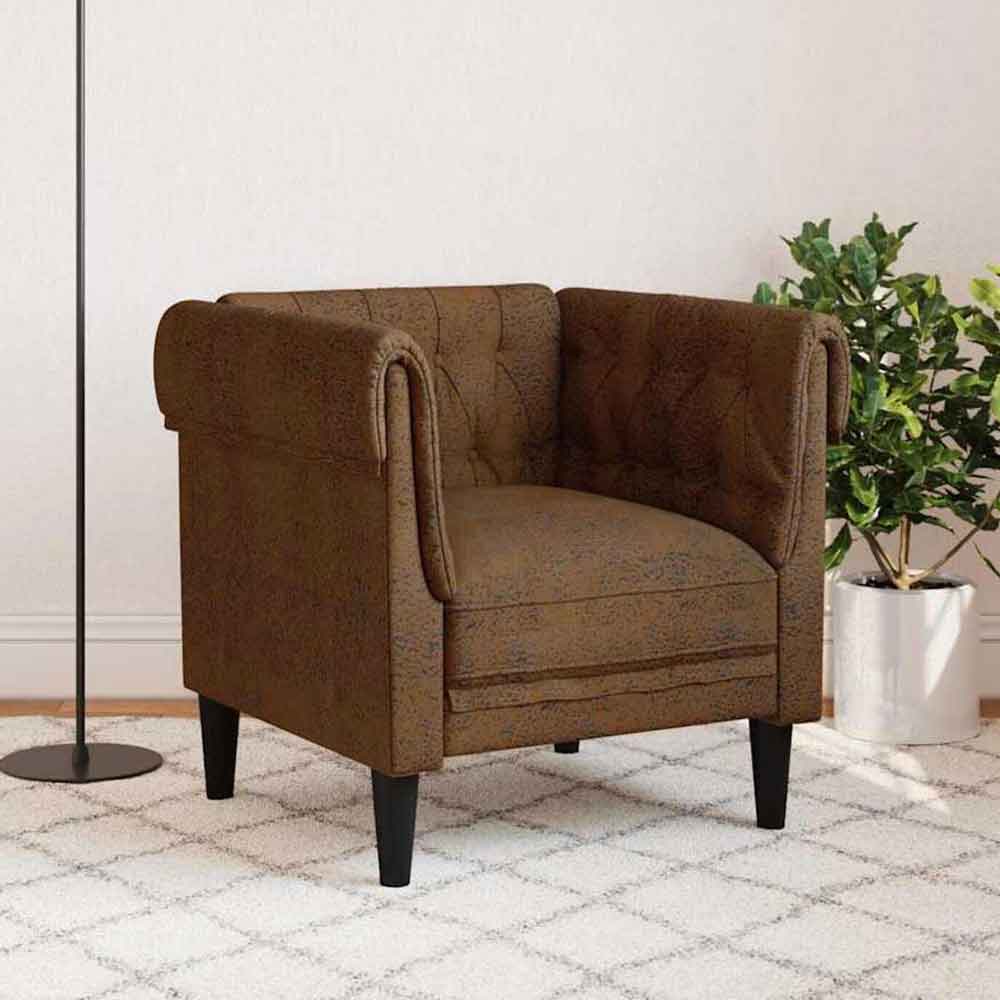 Bring classic elegance and modern comfort into your home with the Furniture in Fashion Ardino Fabric 1 Seater Sofa In Brown. Designed with iconic Chesterfield styling, this sofa features deep button tufting, rolled armrests, and a rich brown finish that enhances both traditional and contemporary interiors. Its warm brown tone adds a welcoming touch to your living room, bedroom, or lounge area, making it a versatile and stylish seating option. Crafted with high-quality polyester upholstery and supportive foam cushioning, this 1-seater sofa offers exceptional durability and everyday comfort. The ergonomic design ensures a relaxing seating experience, while its sturdy construction provides long-lasting reliability. With compact dimensions and timeless appeal, the Ardino Sofa is perfect for creating a cosy and refined seating space in any home. FEATURES: Material: Polyester Finish: Brown Upholstered in durable brown polyester fabric for long-lasting use and comfort Classic Chesterfield design with deep button tufting and rolled armrests for timeless elegance Foam-filled cushioning provides excellent comfort and supportive seating experience Compact 1 seater design ideal for living rooms, bedrooms, or small spaces Ergonomically designed seating ensures comfort and relaxation after a long day Strong and durable construction ensures reliable everyday performance Maximum weight capacity: 110 kg, offering sturdy and dependable support Suitable for indoor use, ideal for modern and traditional interiors alike Assembly required; delivered with instructions for easy setup Available at an affordable price Images shown are for illustration purpose only DIMENSIONS: Height: 74. 5cm Width: 78. 5cm Depth: 74. 5cm