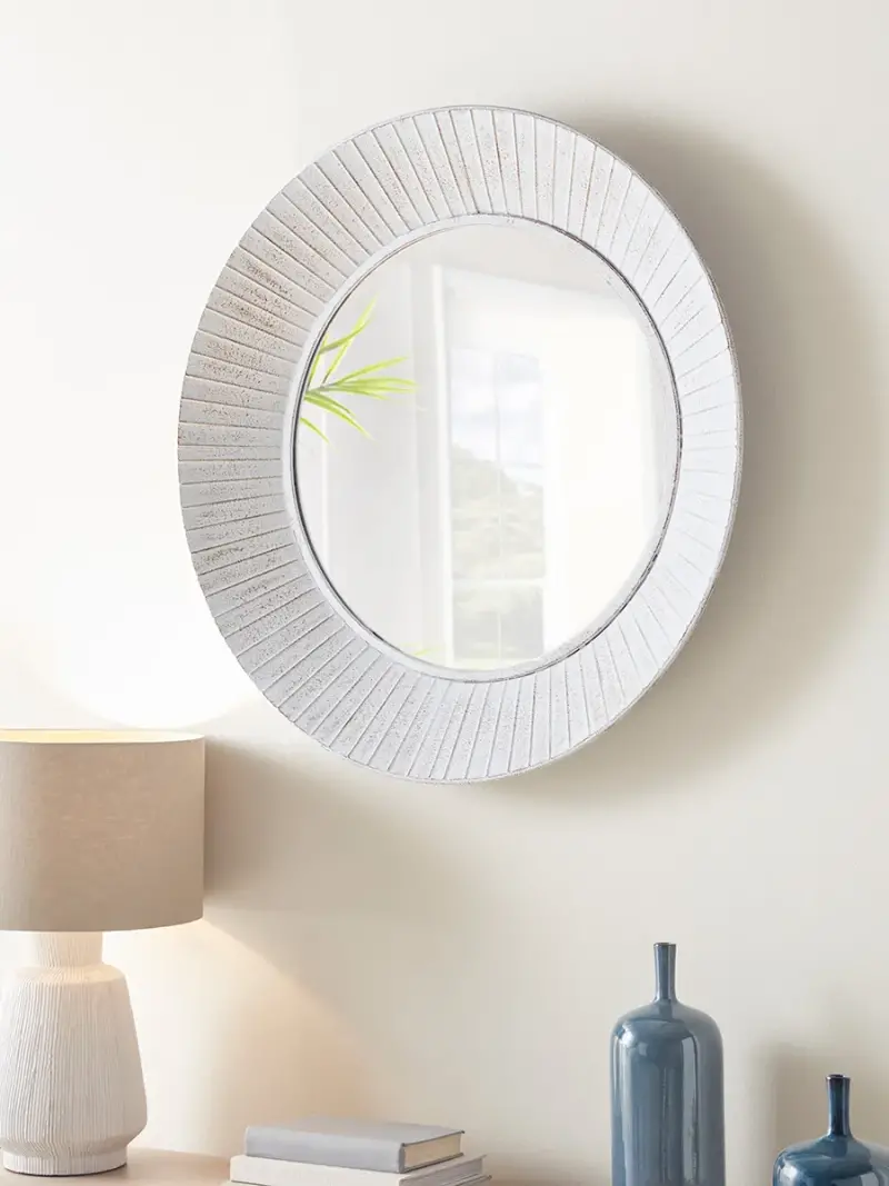 Designed to make a sympathetic statement in a laid back setting, out Ariane Mirror has a simple textured round metal frame softened with a gently distressed cream pain effect. The perfect complement to a coastal themed room - hang above a fireplace or over a console table for a beautifully styled effect.