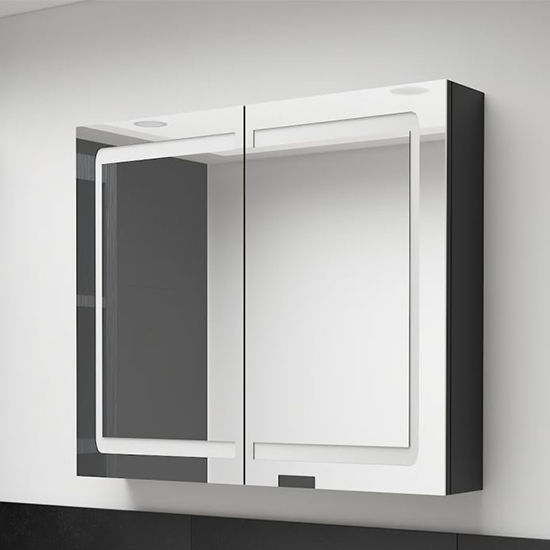 Arvada Bathroom Mirrored Cabinet In Shining Black With Led