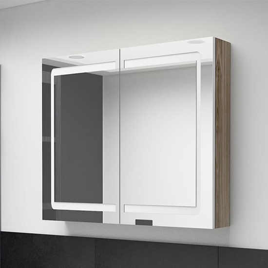 Arvada Bathroom Mirrored Cabinet In White And Oak With Led