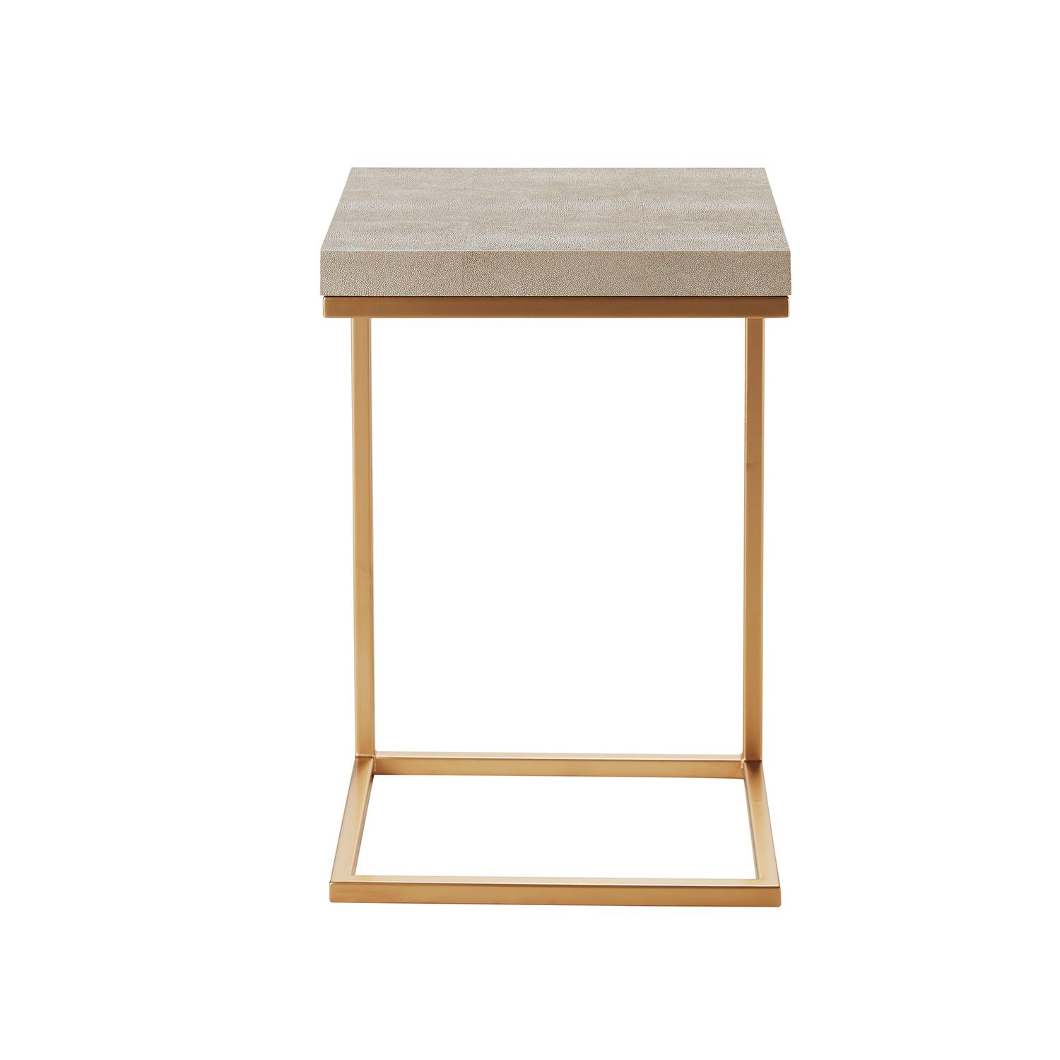 Cream shagreen side table With sleek metallic legs and a gorgeous faux shagreen top Ashley will bring a sense of glamour into your home. This side table is practical in smaller living spaces, as it's base allows it to slide neatly under chairs, sofas and other furniture. The perfect combination of style and practicality. Ashley Side Table Cream, Side Table - Andrew Martin