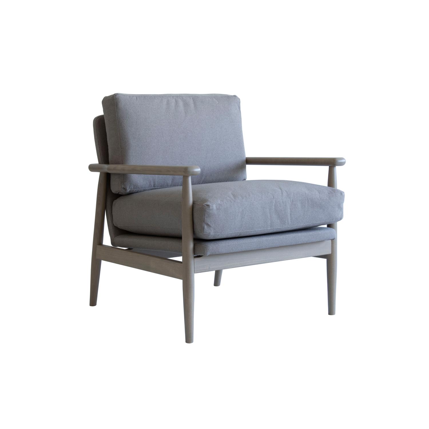 Discover the Augustus armchair in ash grey. A mid-century modern chair with a solid wood frame, Crib 5 fabric & timeless style—ideal for home or hotel. Augustus Chair Ash, Chair - Andrew Martin Other Fabric