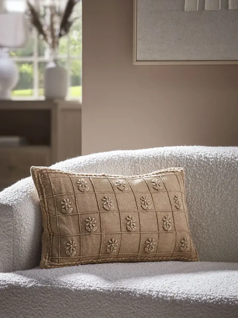 In a warming terracotta, our Auricula Cushion adds a heartwarming decorative touch to your home.The cover features a delicate embroidered trellis and flower detail for a sweet finish to this cotton cushion.