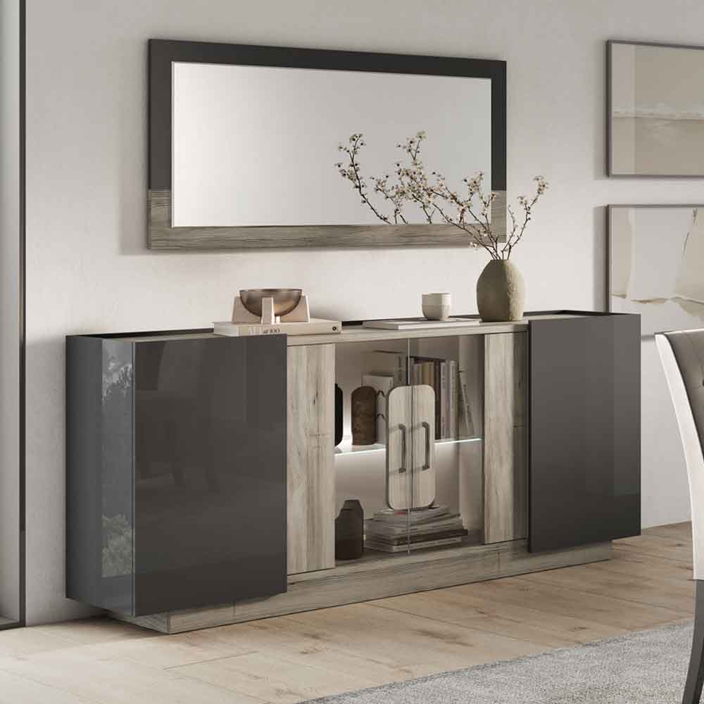 Avora High Gloss Sideboard With 4 Doors In Dark Grey Pine And Led