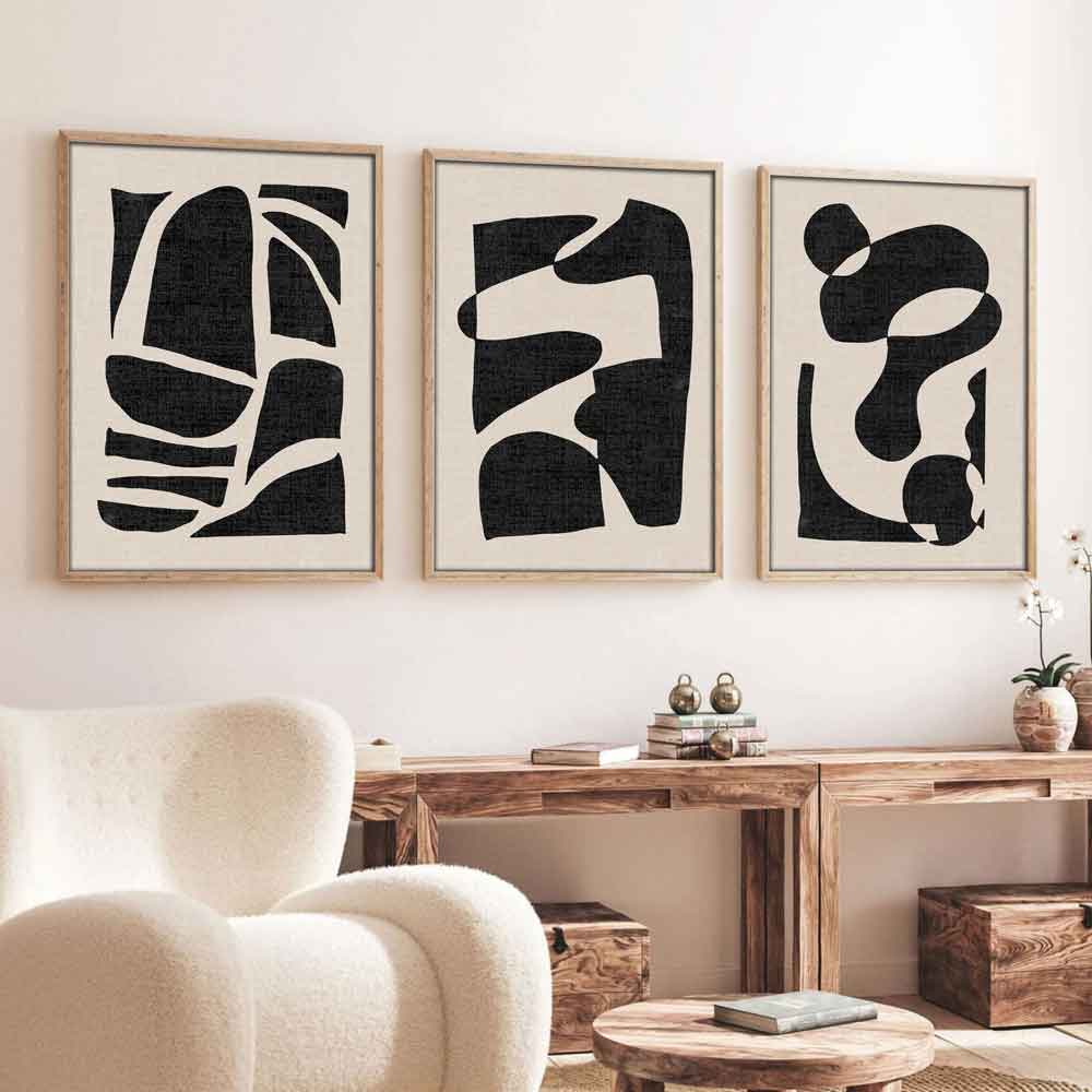 Add a bold artistic statement to your interiors with the Furniture in Fashion Axiom Wooden 20x30cm Primitive Art Frame Set of 3 in Black and White. Inspired by raw, primitive forms and abstract expression, this striking wall art set showcases powerful patterns that bring depth and character to any space. The classic black and white palette enhances its visual impact while maintaining a clean and contemporary aesthetic, perfect for modern and industrial-style homes. Expertly crafted with quality materials, each piece features high-definition artwork printed on durable MDF, ensuring a smooth and refined finish. Encased in sturdy, solid wood frames, this set offers both longevity and a premium look. Whether displayed together as a cohesive arrangement or styled individually, these frames effortlessly elevate your decor with a unique and artistic edge. FEATURES: Material: 100% MDF, 100% Solid Wood Finish: Black, White Painting is made from 100% MDF, Frame is made from 100% Solid Wood Primitive-inspired abstract design adds a bold and artistic statement Timeless black and white colour scheme complements modern interiors Set of 3 frames creates a cohesive and balanced wall display Made from 100% MDF with 3 mm thickness for a smooth and durable artwork surface Solid wood frames with 2. 5 cm thickness for strength and a premium finish Each frame measures 20x30cm, ideal for versatile wall arrangements Lightweight yet sturdy construction for easy hanging and repositioning Perfect for living rooms, bedrooms, hallways, or office decor Enhances interiors with a raw, modern, and expressive aesthetic Easy to clean and maintain for long-lasting visual appeal Available at an affordable price Images shown are for illustrative purposes only DIMENSIONS: Height: 30cm Width: 20cm Depth: 0. 3cm