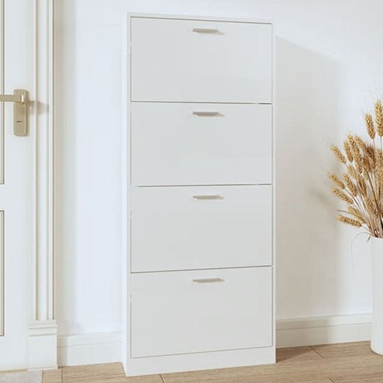 Axton High Gloss Shoe Storage Cabinet With 4 Flaps In White