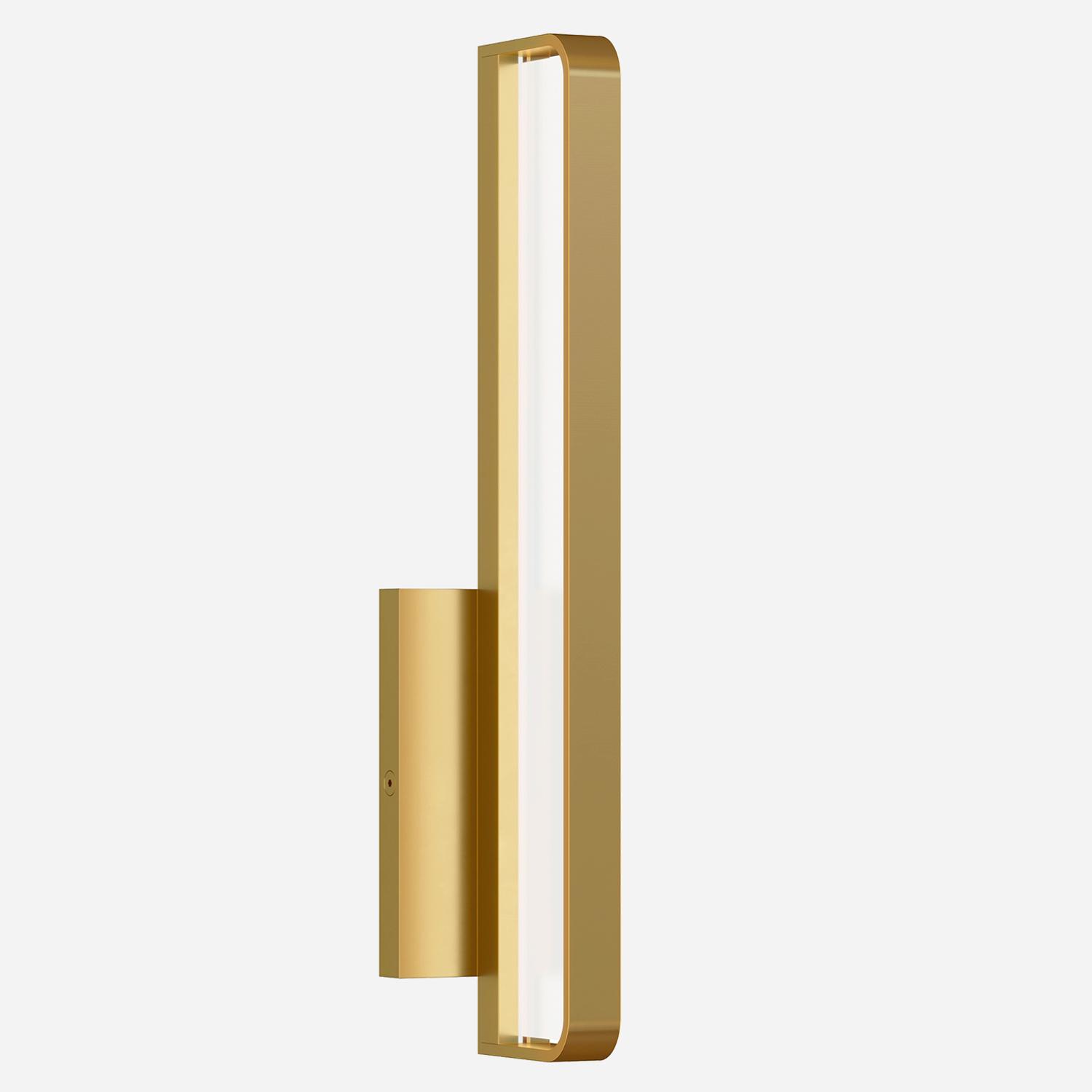 Designed with modern appeal, this linear natural brass wall light by Sean Lavin provides a clean aesthetic with straight-lines and crisp edges enveloping integrated LEDs. Banda Wall Light Brass, Wall Light, Natural Brass - Andrew Martin