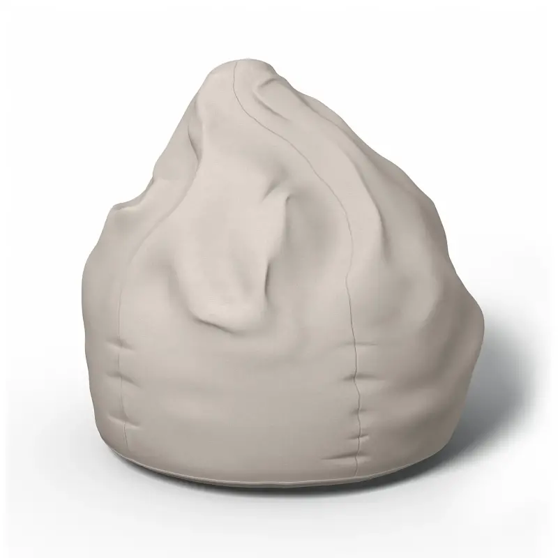 The size of the beanbag cover is calculated with the diameter of the base plate at 60cm and the total height of the beanbag. Fits most pear-shaped beanbags from different manufacturers and can also be filled with pillows and blankets. The cover has a zipper along the bottom plate and is sewn of durable fabric made of 100% natural fibers, machine washable.