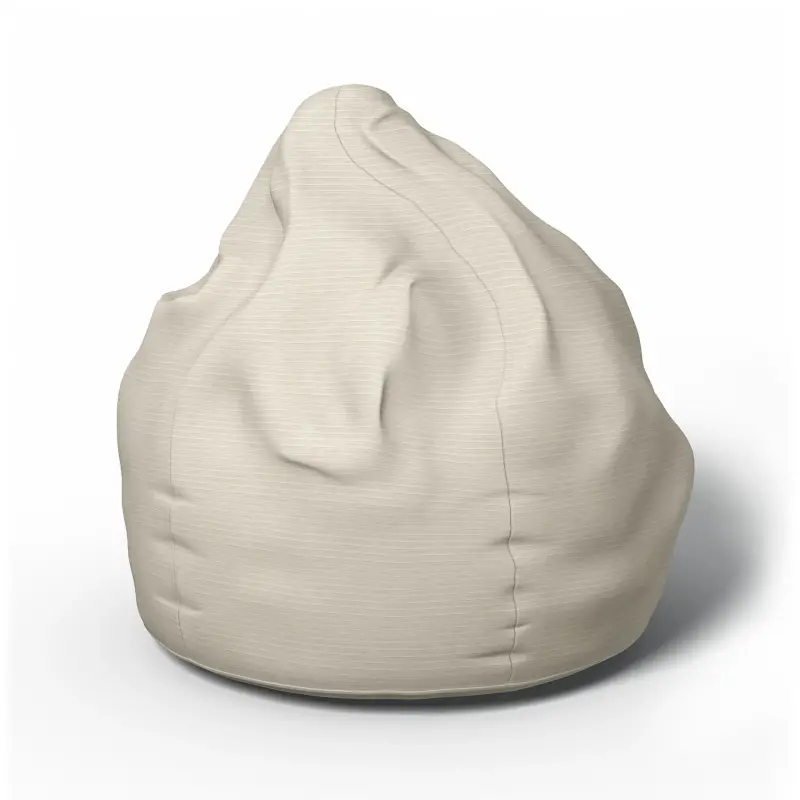 The size of the beanbag cover is calculated with the diameter of the base plate at 60cm and the total height of the beanbag. Fits most pear-shaped beanbags from different manufacturers and can also be filled with pillows and blankets. The cover has a zipper along the bottom plate and is sewn of durable fabric made of 100% natural fibers, machine washable.