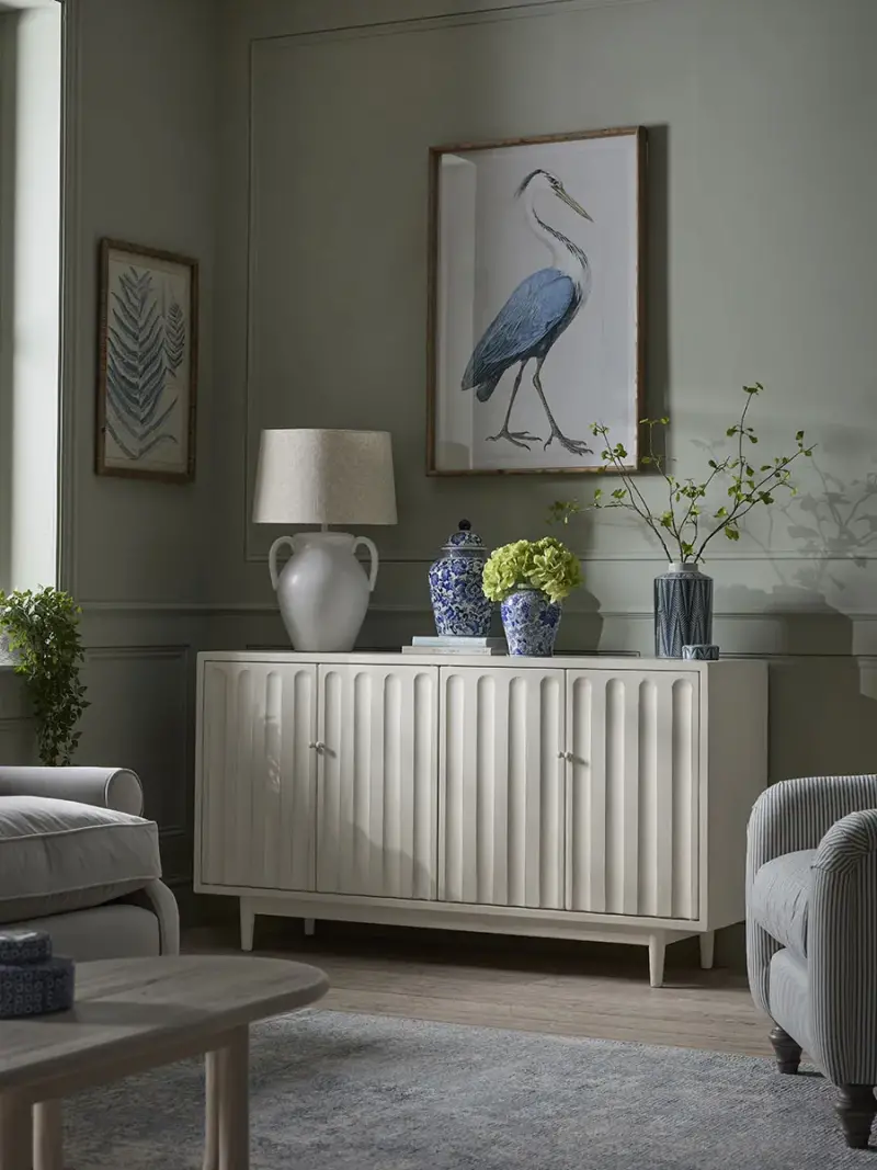 With a simple silhouette, our Beata sideboard is crafted from a recycled pine that is painted white, creating a gently distressed finish for a relaxed look in your home.The cupboard doors have a wonderful reeded design that adds a gentle elegance to the piece, providing a softness that works wonderfully within our French Blue trend and in a home that embraces a laid-back and cool toned palette.
