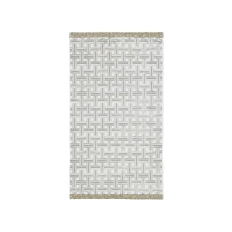 Rana Hand Towel Chartreuse/Silver A beautifully soft all-over graphic geometric patterned towel in white and silver with an olive green hem. Made from 100% BCI cotton, finished with an anti-piling treatment. Made in Green certified.