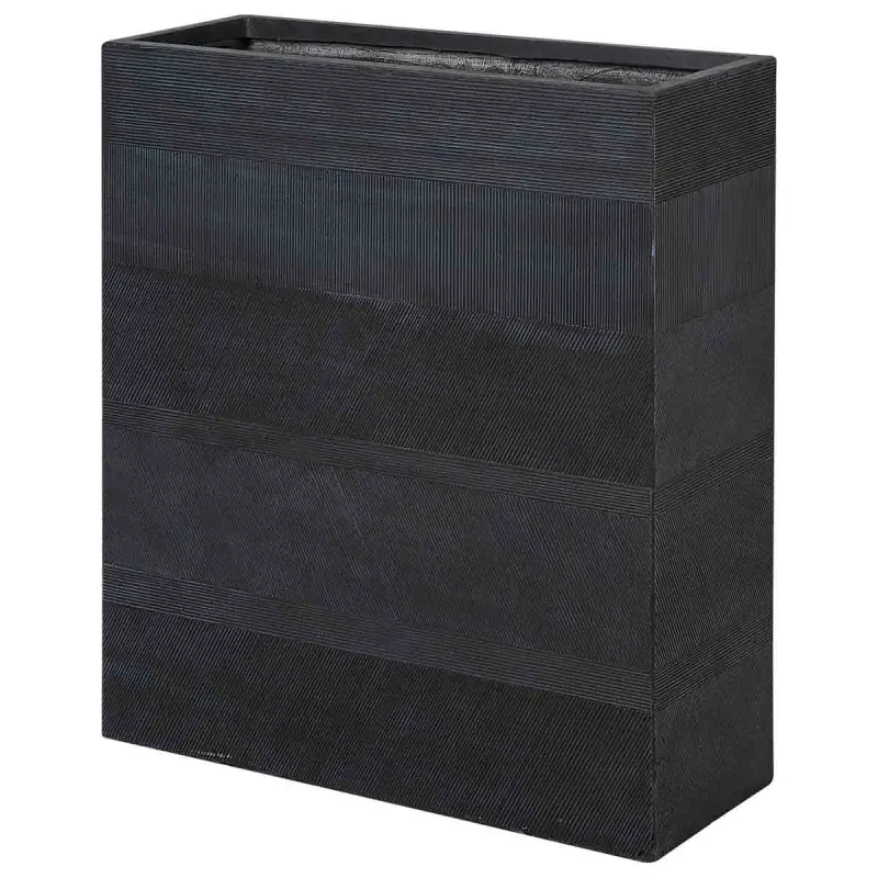 Featuring unique texture and durable materials, this flower pot suits perfectly with any modern, minimalist and contemporary balcony, garden or dining room. Its high and wide construction leaves plenty of room for all kinds of plants, including overflowing, hanging blooming flowers. The pot is made from UV and weather-resistant fibre clay, so it can be used both indoors and outdoors. Features: With Drainage Hole Modern Design UV Resistance Both for Indoor and Outdoor Use Resistant to Low and High Temperatures Specifications: Dimensions: H:92 x W:80 x D:30 cm Weight: 30.0 kg Colour: Black Guarantee: 2 Years Material: Fibre Clay, Fibreglass Model Number: 378335