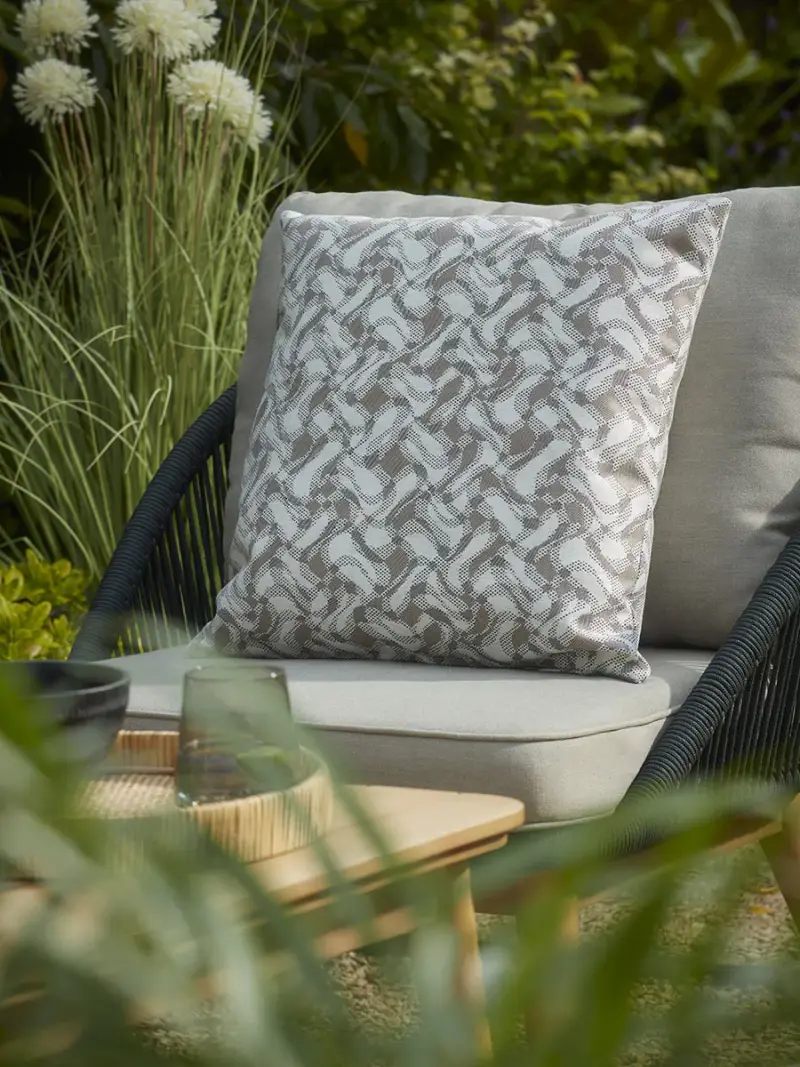 Add extra comfort to your outdoor seating with our Belmont Outdoor Cushion. Neutrals and taupe swirls combine in an abstract pattern for an alluring addition to your garden.