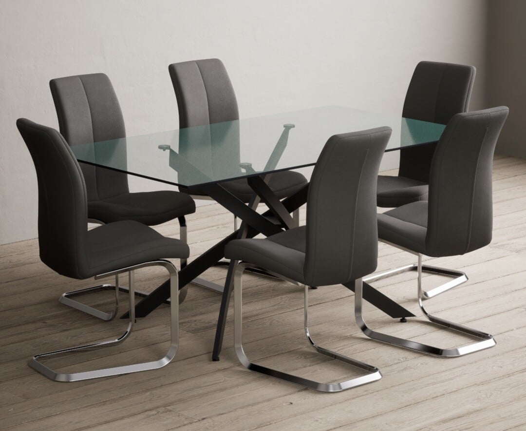 Bernini 160cm Black Leg Rectangular Glass Dining Table With 6 Grey Gianni Chairs