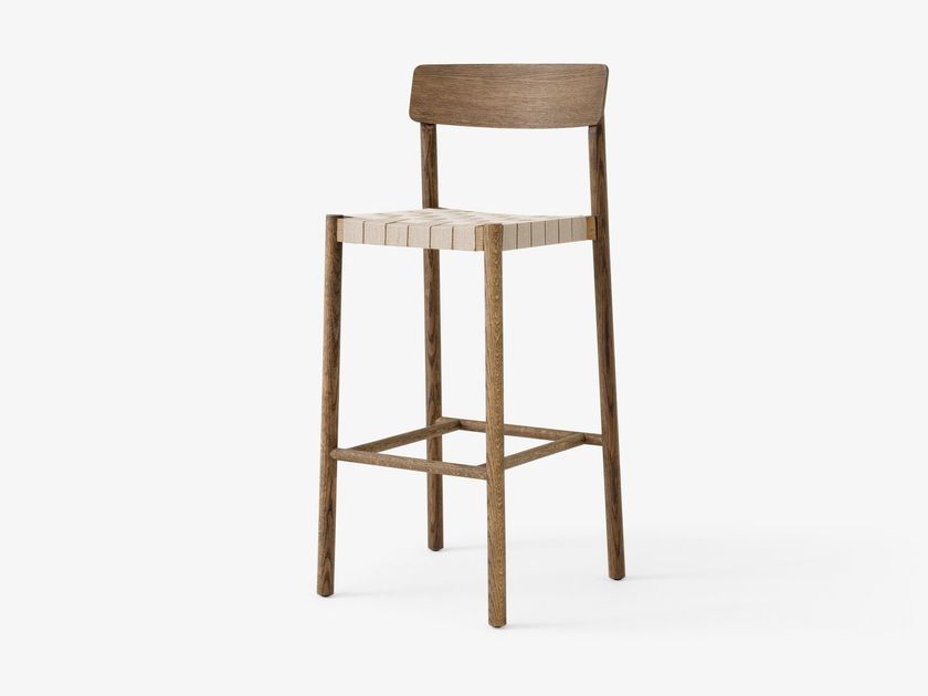 Solid wood bar stool with linen seat