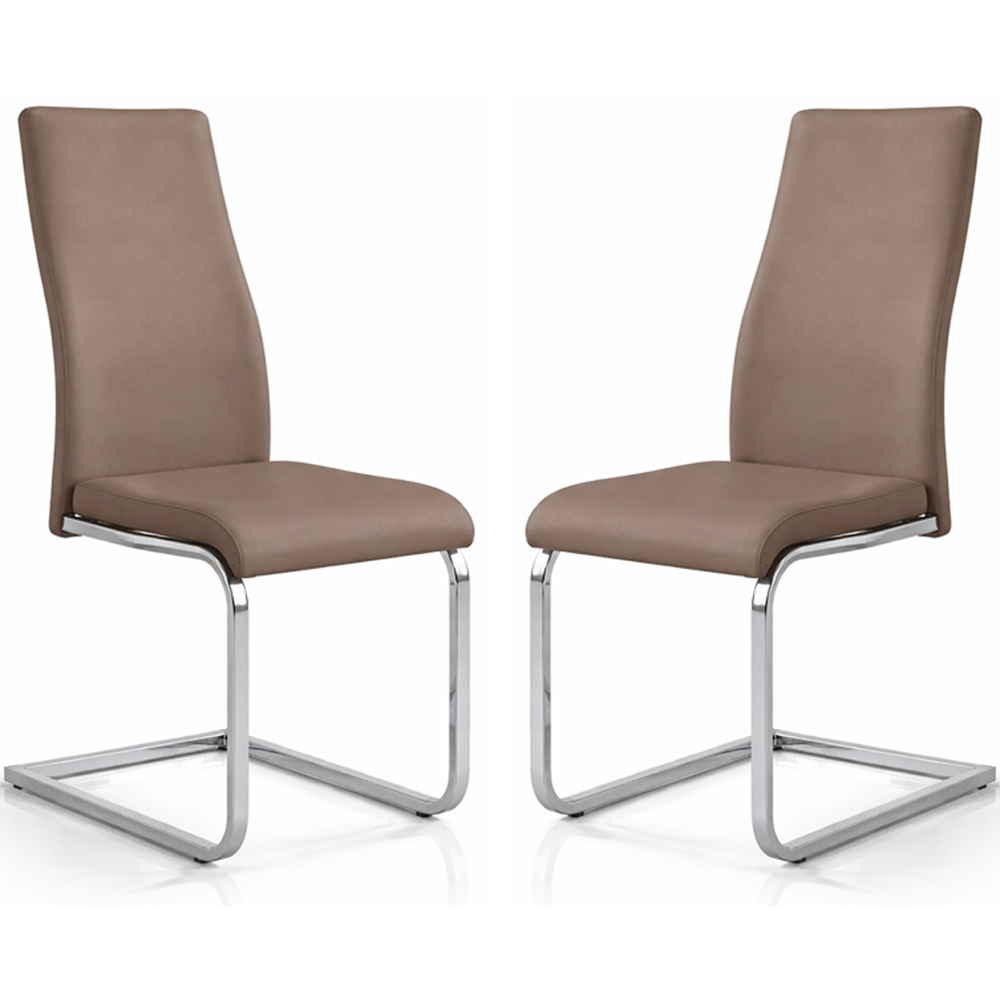Beverly Cappuccino Pu Dining Chair With Chrome Legs In Pair