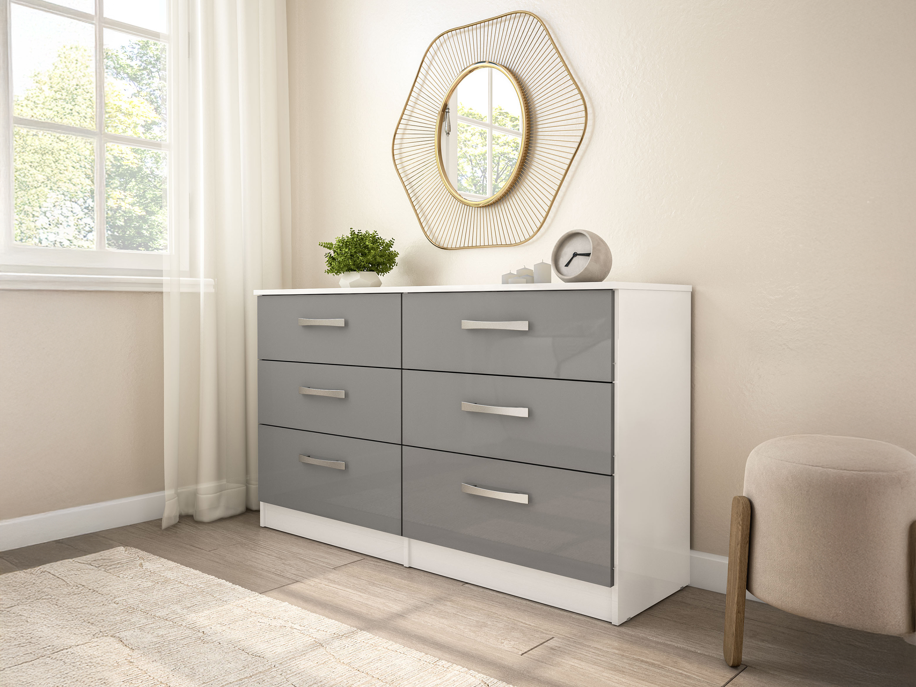 Look no further! Birlea Lynx 6 Drawer Chest White And Grey Drawer Chest is a must have for your home!