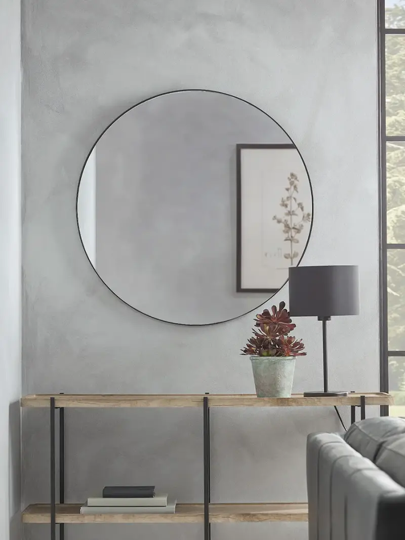 Simple and contemporary, our large, round mirror features the slenderest of frames in minimal matte black. Display above a bench in your hallway, over a console or above your bed to reflect light from all directions and add a modern feature to your wall space.