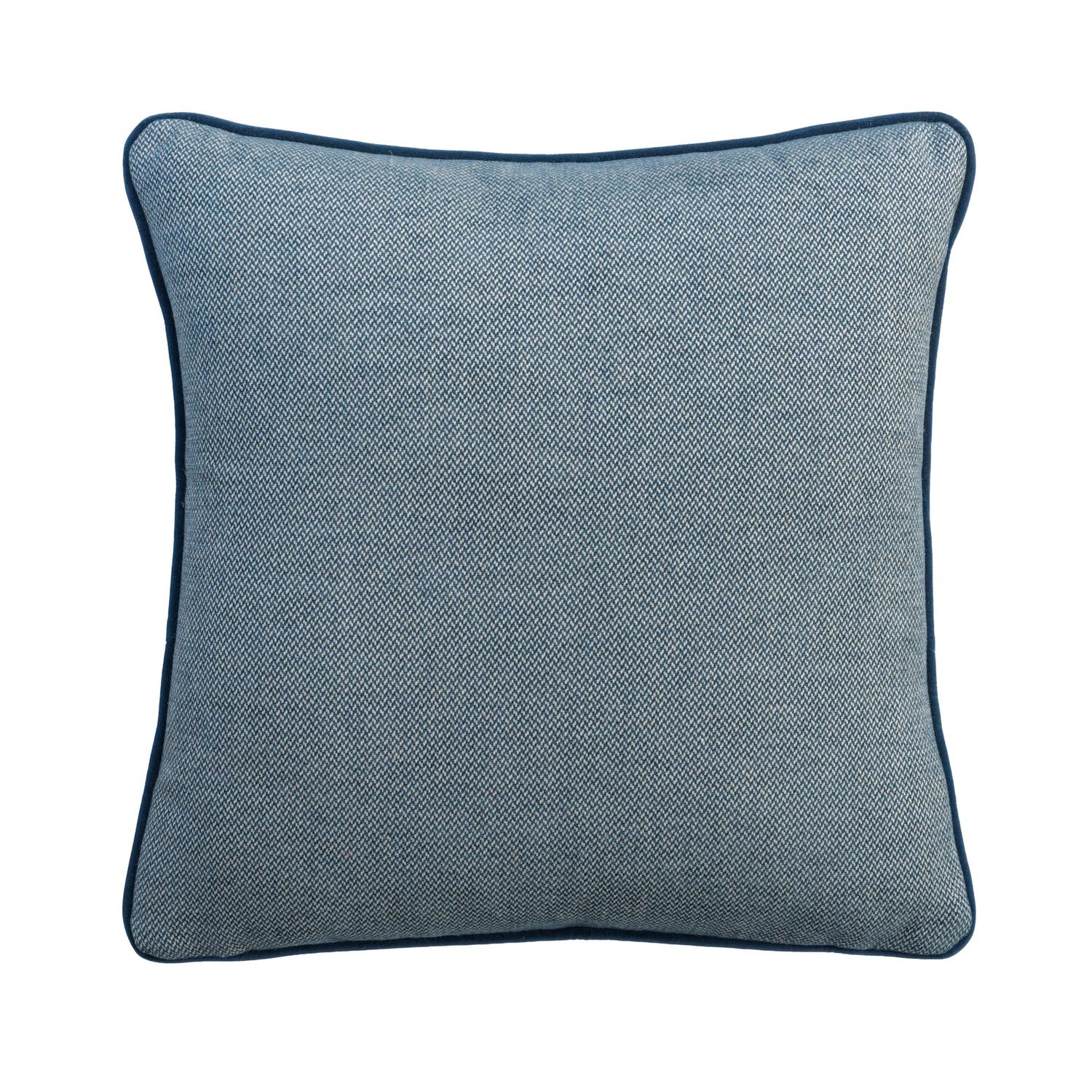 A cushion in Bomore Piemonte, a subtle and smart upholstery weave with a blue-grey tone, created by the interplay of soft blue and neutral threads. Bomore Piemonte, Sustainable Feather, Cushion, 55cm x 55cm - Andrew Martin Linen Blend & Viscose Blend Plain & Weave