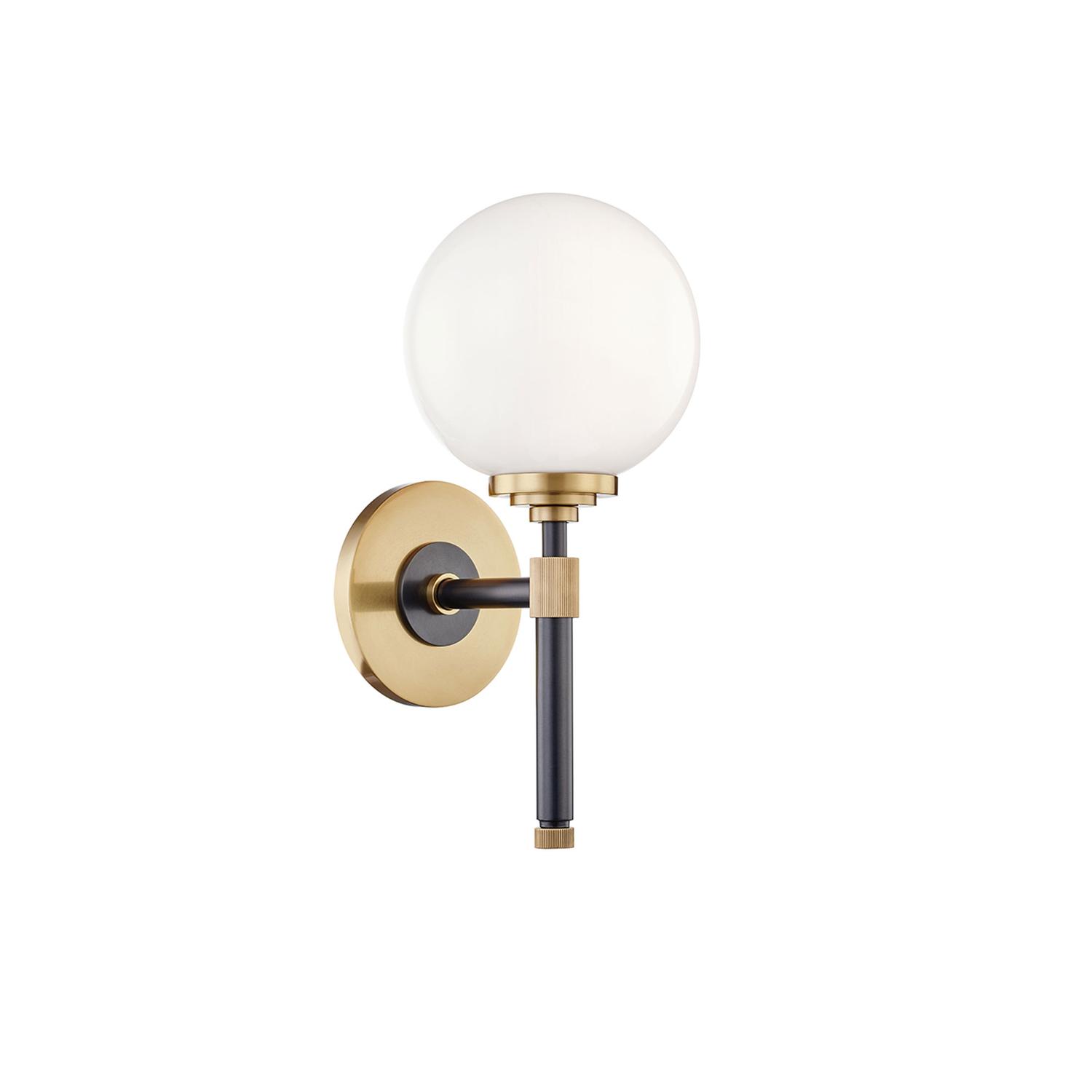 Bowery's classic silhouette is enhanced by its two tone aged old bronze and black finish with knurled metal accents. Topped with a translucent glass orb this simple yet elegant piece lends itself beautifully to transitional spaces. Bowery Orb Wall Light Bronze, Wall Light, Old Bronze - Andrew Martin