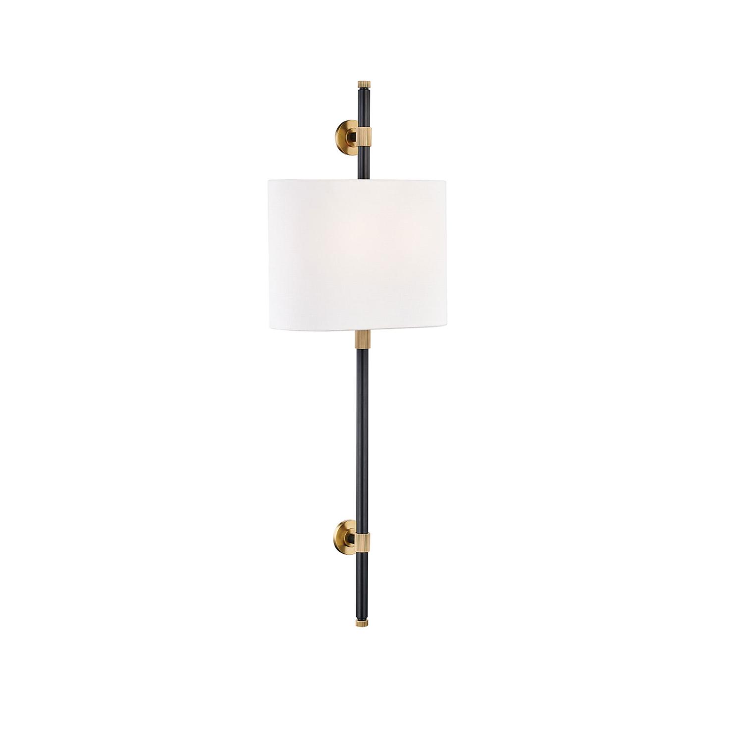 Bowery's classic silhouette is enhanced by its two tone aged old bronze and black finish with knurled metal accents. A central bar is straddled by a crisp white linen shade which sits flush against the wall creating a seamless and elegant piece which lends itself beautifully to transitional spaces. Bowery Wall Light Bronze, Wall Light, Old Bronze - Andrew Martin