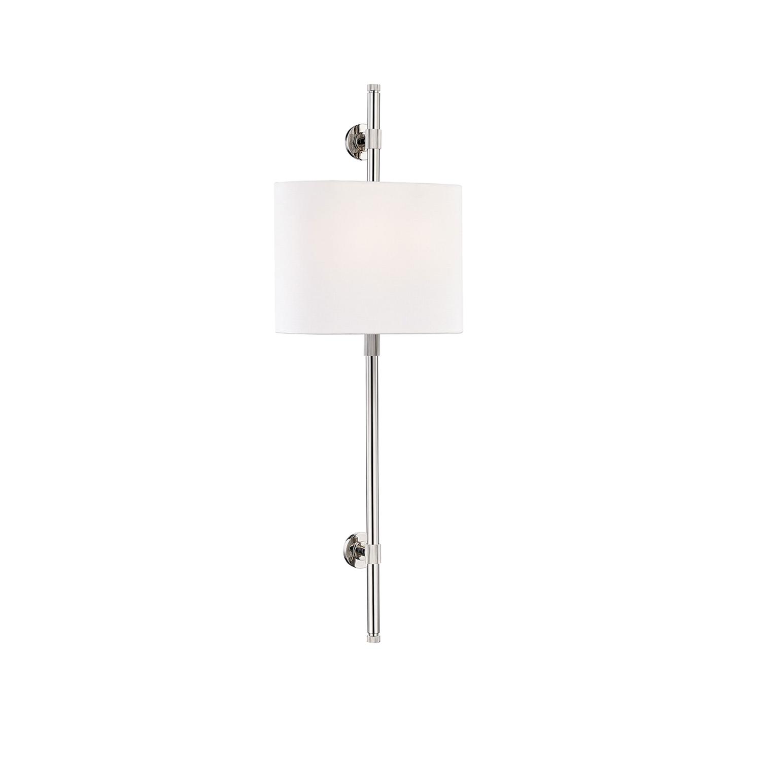 Bowery's classic silhouette is enhanced by its polished nickel with knurled metal accents. A central bar is straddled by a crisp white linen shade which sits flush against the wall creating a seamless and elegant piece which lends itself beautifully to transitional spaces. Bowery Wall Light Nickel, Wall Light, Polished Nickel - Andrew Martin