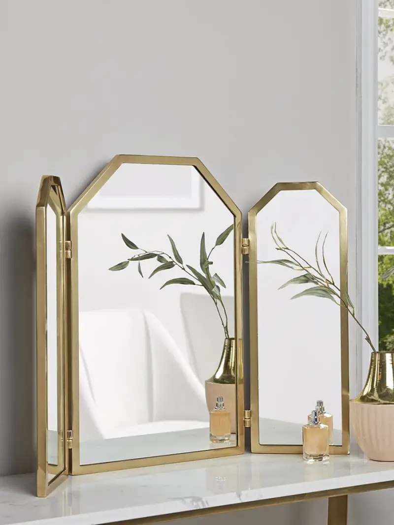 Crafted from brass our elegant hinged table mirror will deliver a luxe tone to your dressing area, and will complete your space perfectly when set above a table.