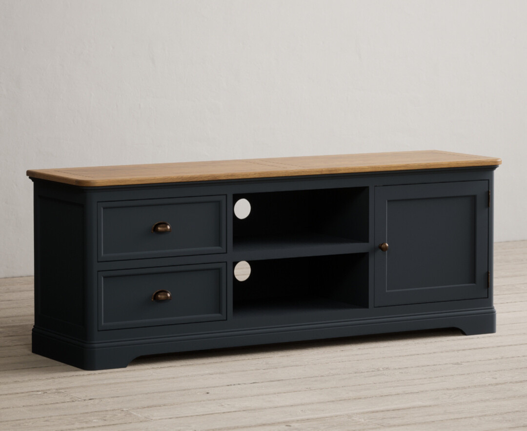 Our review of the Bridstow Oak And Blue Painted Super Wide Tv Cabinet