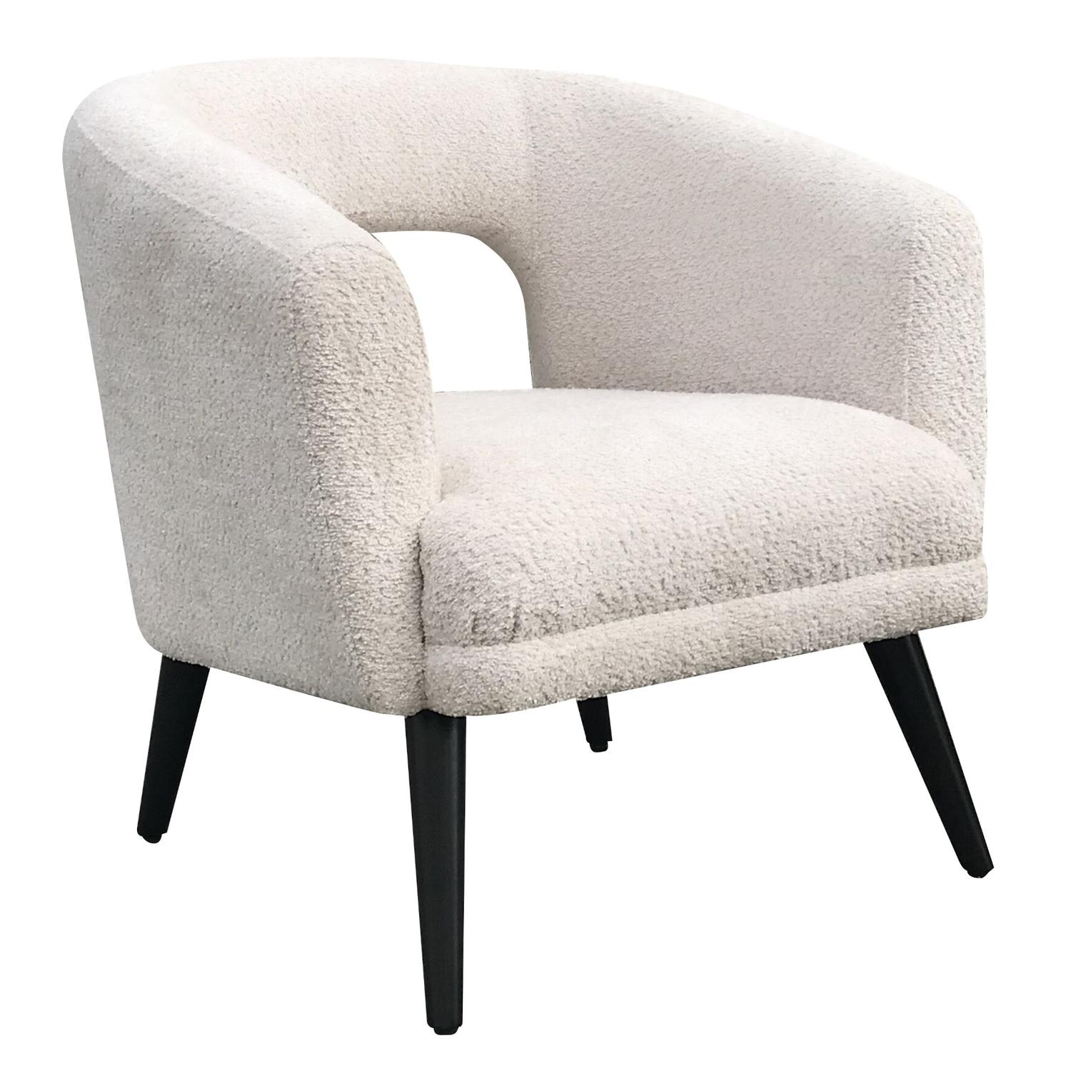 A bold, occasional chair with a striking silhouette and cut out back. The Buco delivers minimalist elegance to any living space. Buco Chair, Armchair, Light Neutral/White - Andrew Martin Boucle
