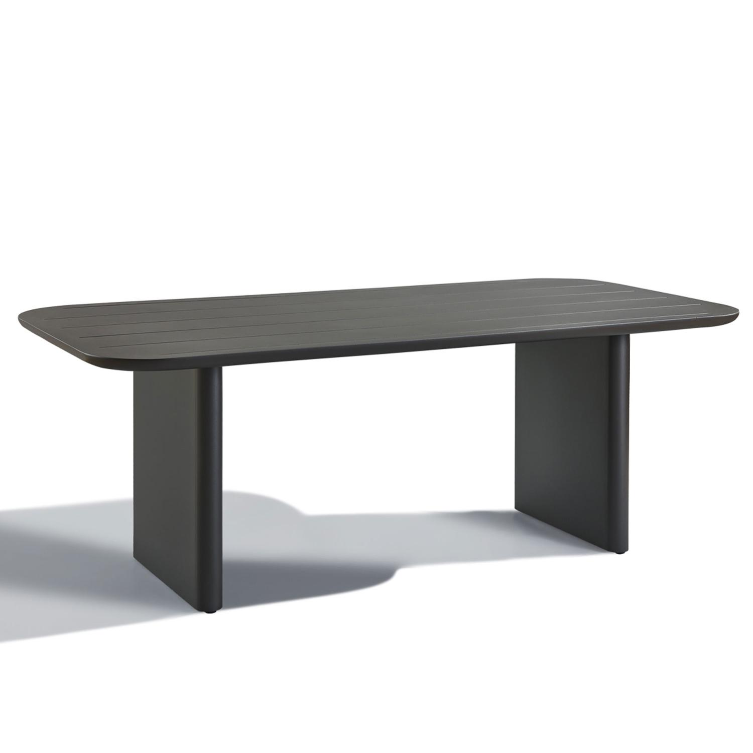 The sleek, contemporary design of this rectangular dining table promises not to interrupt with its natural surroundings whilst providing the perfect stage for entertaining. Crafted from dark grey, powder-coated, rust proof aluminium which is specifically engineered for outdoor use, the graphite grey shade feels modern and understated. Caicos Dining Table Slate, Outdoor Dining Table - Andrew Martin