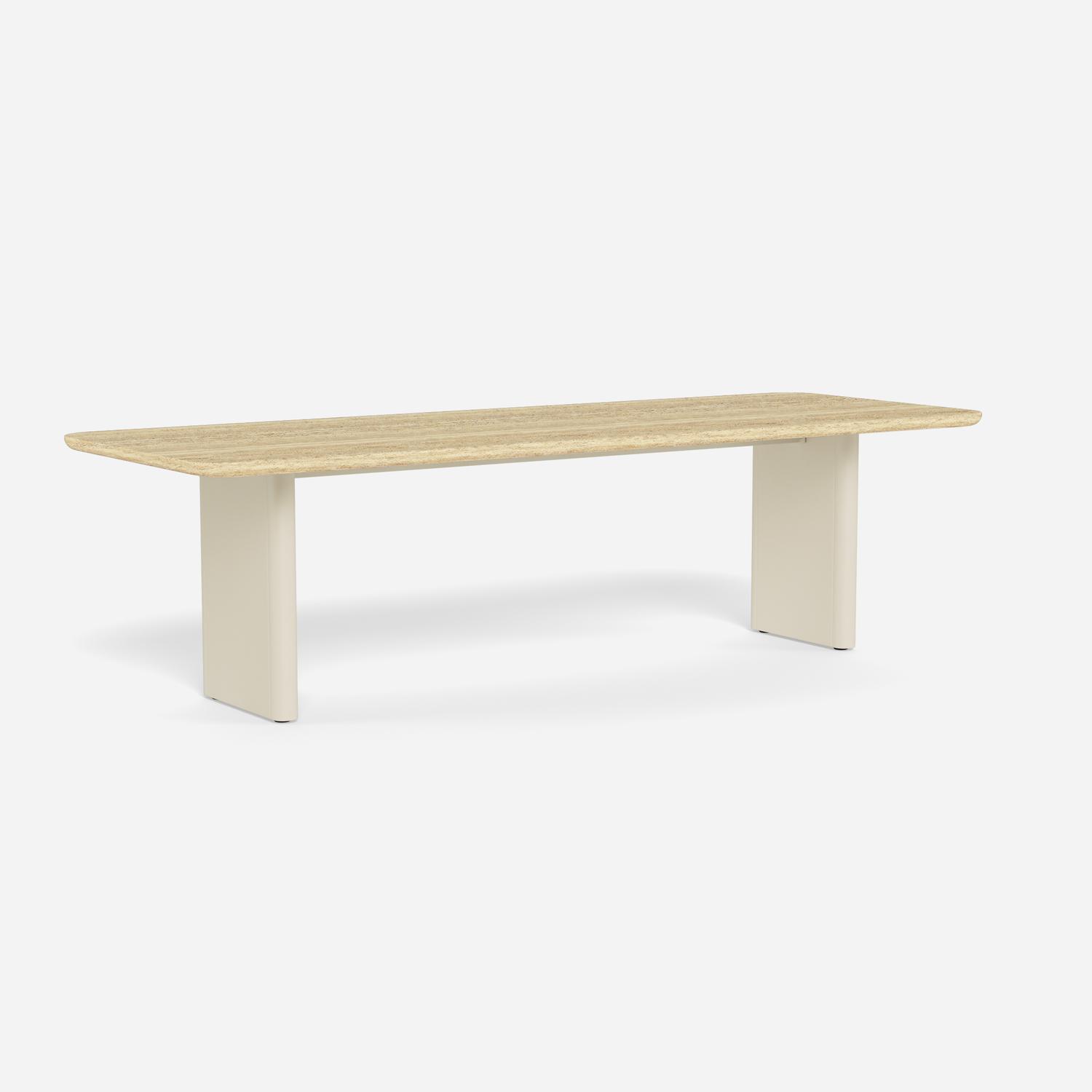 The Caicos Collection combines sleek curves and clean angles for a balanced, modern look. The 108" Dining Table, crafted from powder-coated aluminum, seats up to ten and adds elegance to outdoor spaces. Pair with Caicos dining chairs for a complete, contemporary set. Caicos Rectangular Dining Table - Andrew Martin
