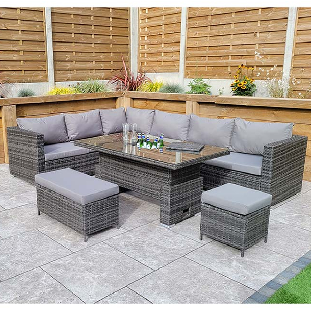 Look no further! Calabar Rattan Garden Corner Dining Set With Lift Up In Grey is a must have for your home!