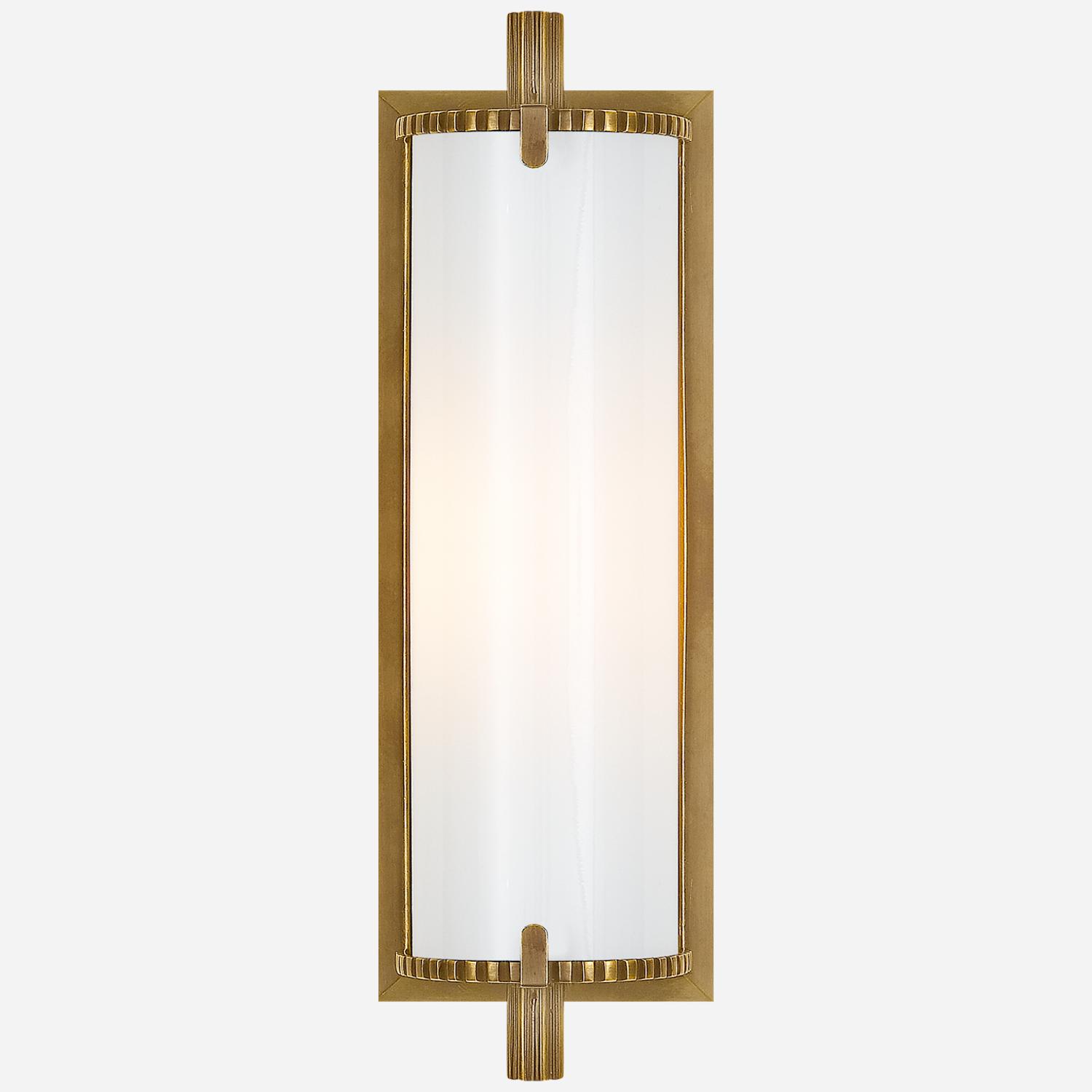 Featuring exquisitely machined detailing in antique brass and beautifully formed white glass, Calliope adds an Art Deco look to your bathroom. Calliope Short Wall Light Brass, Wall Light, Short - Andrew Martin