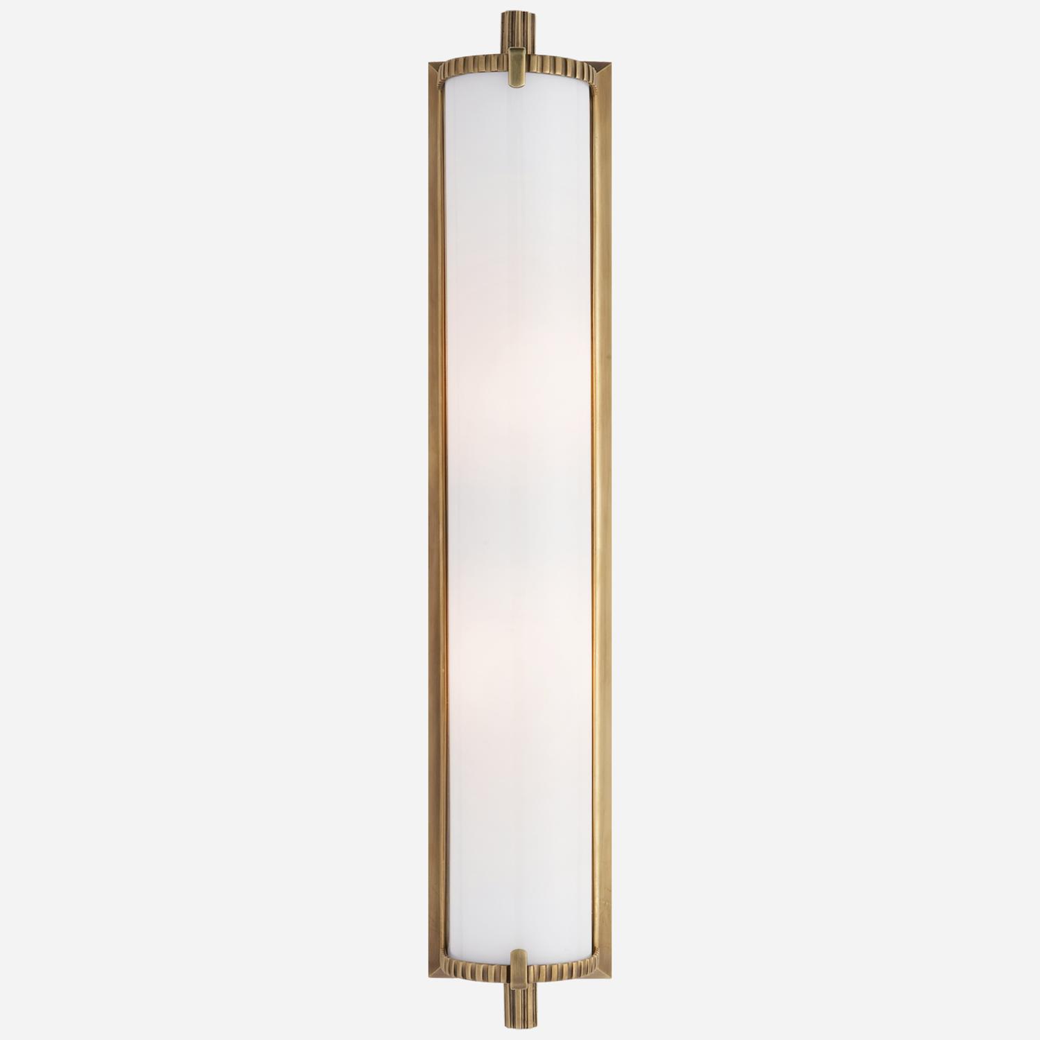 Featuring exquisitely machined detailing in brass and beautifully formed white glass, Calliope adds an Art Deco look to your bathroom, hallway or living room. Calliope Tall Wall Light Brass, Wall Light, Tall - Andrew Martin