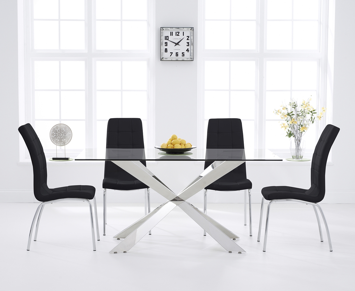 Our review of the Canova 160cm Glass Dining Table With 4 Grey Enzo Chairs