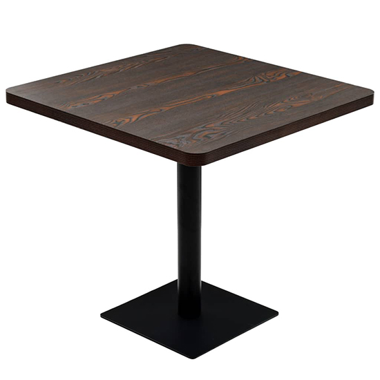 Causer Square Wooden Bistro Table In Dark Ash, Create a romantic French atmosphere with our elegant bistro table. FEATURES : Material : MDF, Steel Finish : Dark Ash, Black The tabletop is made of MDF with a grain finish and is supported by a steel leg and base It is easy to clean with just a damp cloth Use it as a single piece in your interior, restaurant, coffee shop or bar Assembly of this item is easy Base size: 42 x 42 cm (L x W) MDF thickness: 3. 5 cm Manual assembly required Available at an affordable price Images shown are for illustration purpose only DIMENSIONS : Height : 75cm Width : 80cm Depth : 80cm
